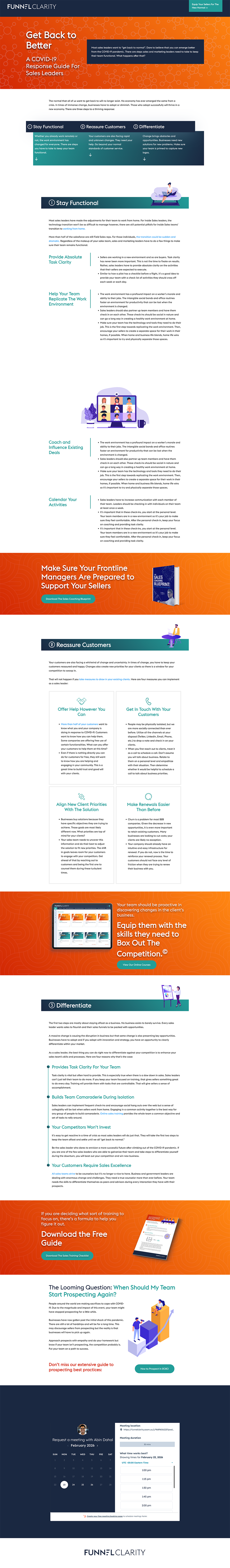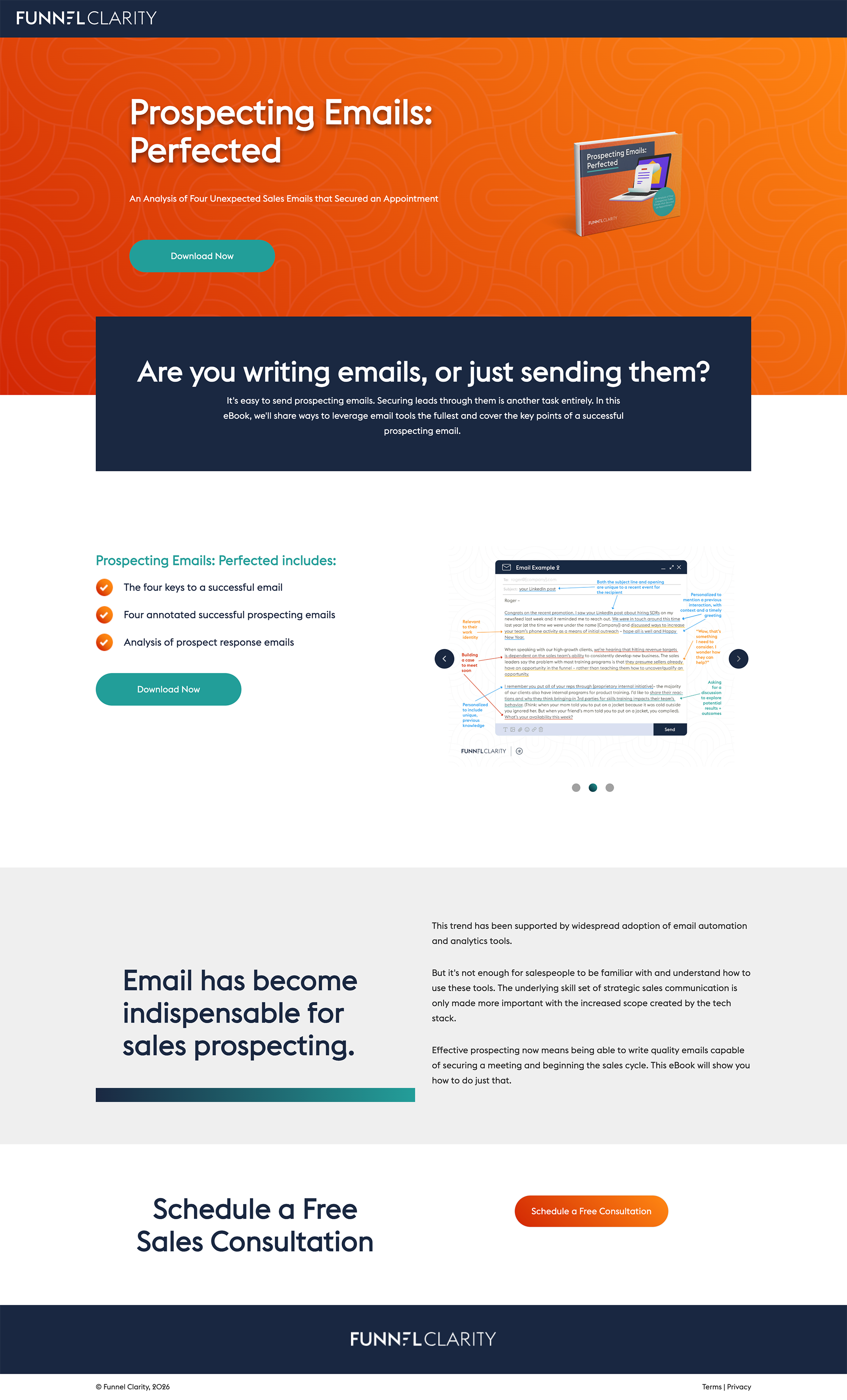 I created layouts and graphics for Funnel Clarity’s entire suite of training courses, but they cannot be shared publicly due to IP constraints. But I also designed and developed every web page on the site for a variety of purposes: