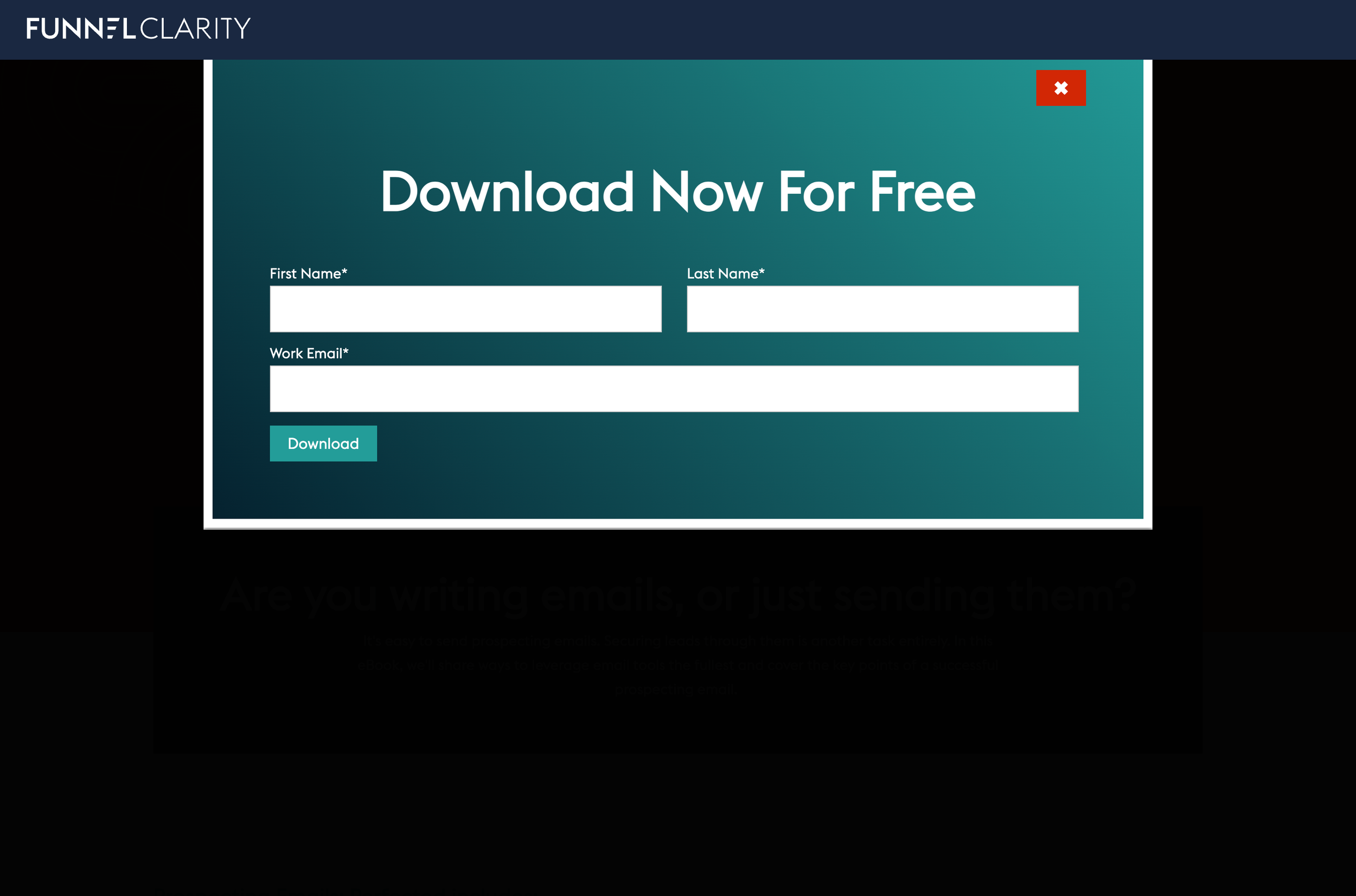 In the case of the asset shown, “Prospecting Emails Perfected”, this updated landing page that employs a modal form I built with Javascript, increased the conversion rate of the page by over 20%.